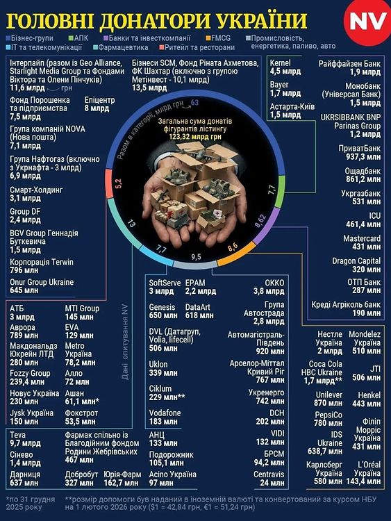 NV Бізнес провело масштабне опитування понад 170 найбільших компаній, банків і бізнес-груп, що працюють на українському ринку. Результати дослідження продемонстрували надзвичайну консолідацію підприємців: понад 70 провідних гравців ринку сукупно спрямували на підтримку України та допомогу населенню більш ніж 120 млрд грн.